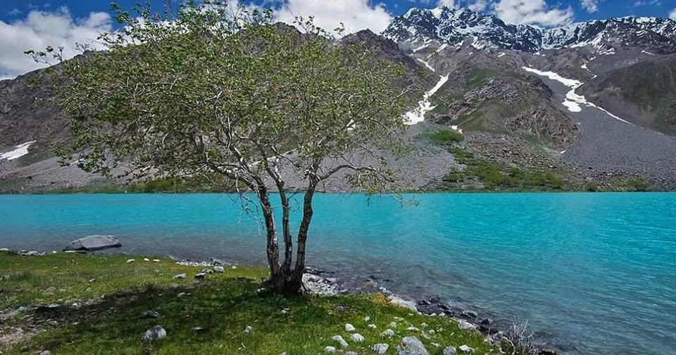 The lake appeared like a turquoise gemstone set between rugged peaks. Its water had a surreal blue color cleaner and brighter than most high-altitude lakes in Pakistan. The surrounding mountains stood tall, wearing patches of snow and shadow, while the sky played a dance of sunlight and clouds over the water.