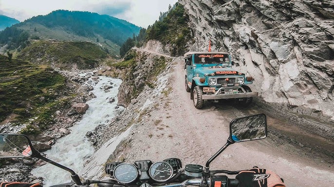 After a quick meal at Duwariyan—chickpea rice with curry—I packed my luggage onto a jeep and kept only my tank bag with me for the trek ahead. This leg of the journey promised challenges but also beauty far beyond imagination. The first 7 km were manageable, paved and relatively smooth, but the last 11 km would be entirely off-road. My guide, Shafiq, assured me that if I faced difficulty, he would assist, and the jeep would provide backup.