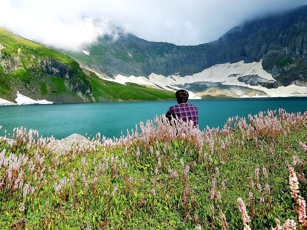 Permission to camp by the lake had been granted after some negotiation with local authorities. Setting up the tent, I was immediately struck by the silence and serenity of the place. Unlike the crowded trails near Kutton, here I had solitude. The lake shimmered under the muted sunlight, partially obscured by lingering clouds from the morning rain. The water reflected the surrounding mountains like a perfect mirror.