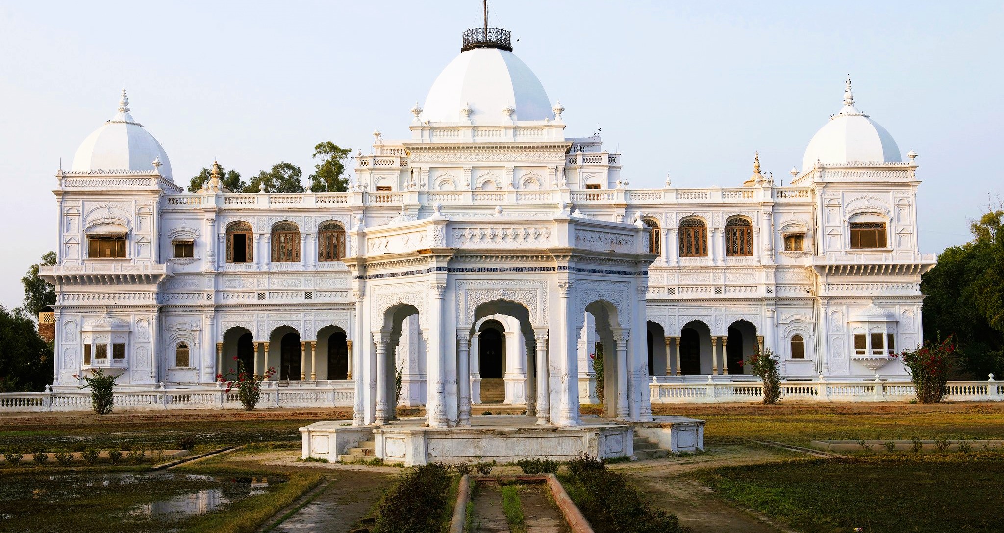 Fusion of Islamic arches, Rajput-style domes, and European columns