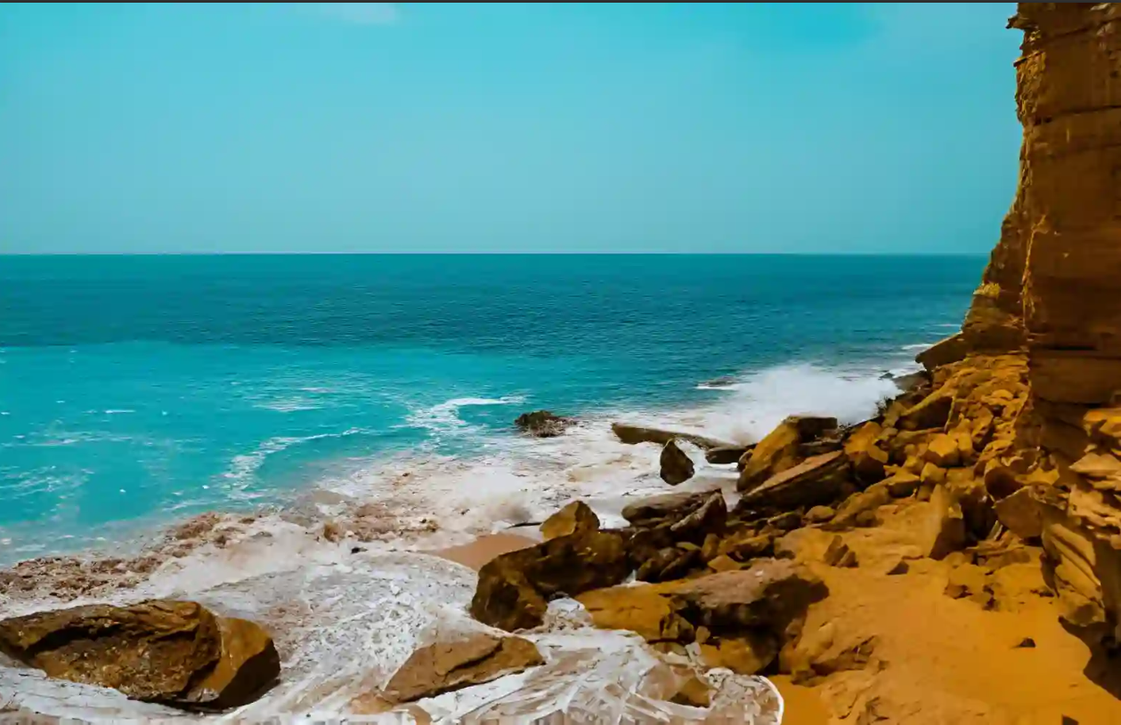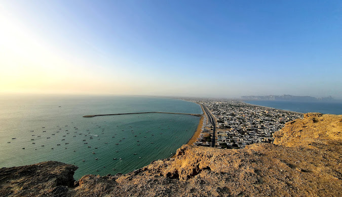 The terrain is a dramatic mix of coastal plains, volcanic hills, and desert expanses. The Hammerhead Peninsula, formed by ancient lava flows, juts into the Arabian Sea like a natural fortress. Inland, the Makran Coastal Range rises in jagged formations, offering panoramic views and geological intrigue.