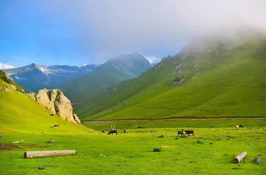 Jahaz Banda is nestled within the Hindu Kush mountain range and surrounded by towering peaks such as Mt. Falak Sar and Mt. Katora. The meadows stretch across several kilometers and are carpeted with wildflowers during the summer months. The landscape is dotted with pine trees, grazing livestock, and traditional wooden huts used by local shepherds. The terrain is mostly flat, making it ideal for camping and hiking, while the surrounding hills offer more challenging treks for seasoned adventurers.